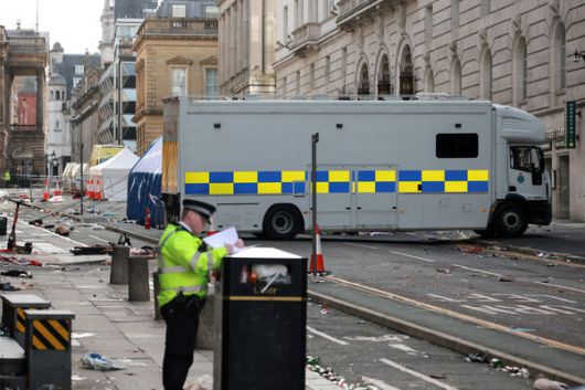영국 공영방송 '비비시(BBC)', '아이티비(ITV)', 스카이 뉴스 등은 27일 오전(한국시간) 영국 리버풀에서 벌어졌던 차량 돌진 사고에 대한 소식을 다시 정리해 보도했다. 사고 현장은 여전히 정리되지 않거나 교통 통제로 어수서한 모습이었다.