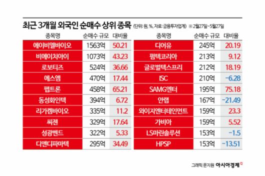 금융투자업계 관계자는 "최근 바이오 업종에 대한 투자심리가 좋아진 점도 외국인 수익률 개선에 영향을 주고 있다"며 "외국인 지분율이 높아지는 상장사에 주목할 필요가 있다"고 설명했다.