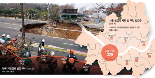 서울 강동구 명일동 싱크홀 사망 사고 등 지반침하 사고가 잇따르자 정부가 지하의 빈 구멍 메우기에 나선다. 또 땅 꺼짐 등이 발생할 수 있는 의심 지역에 대한 조사 권한도 지방자치단체가 아닌 정부로 이관해 고위험 지역을 직접 관리할 방침이다.