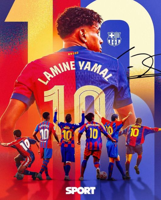 바르셀로나의 상징과도 같은 등번호 10번을 물려받는다. 스페인 '스포르트'는 "야말은 7월 13일까지 후안 라포르타 회장과 공식 계약 사진을 찍지 않을 예정이다. 그는 가족들과 함께 있을 것이며, 아마도 새로운 10번 유니폼을 선보일 예정이다"라고 내다봤다.