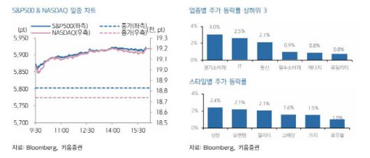 28일 한지영 키움증권 연구원에 따르면 전날 미국 증시는 트럼프의 EU 관세 유예, 5월 소비심리지수 급 반등, 30년물금리 5.0% 하회 등 우호적인 대외환경 속 테크주 강세에 힘입어 상승 마감했다.
