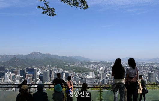 5월 연휴 이틀째인 4일 서울 남산공원 전망대를 찾은 시민들이 푸른 하늘을 보며 봄날씨를 즐기고 있다. 2025.05.04 /서성일 선임기자 |