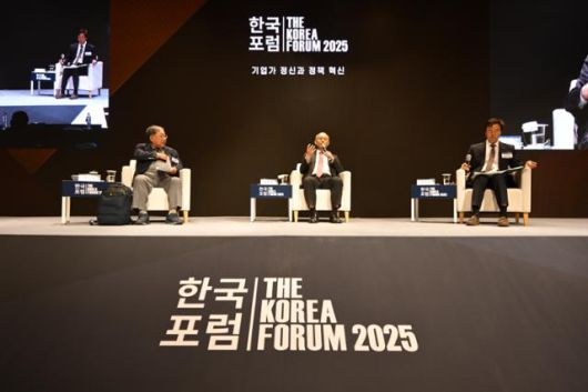 27일 서울 중구 웨스틴조선에서 '기로에 선 한국 핵심산업'을 주제로 열린 '2025 한국포럼'에서 마이크를 잡은 재계·학계 인사들은 규제를 줄여 기업가 정신을 되살려야 한다고 입을 모았다. 한국 경제의 활력을 되찾기 위해서는 기업의 도전 정신이 되살아나야 하고 그 '열쇠'는 정부가 쥐고 있다는 역설의 주장이다. 특히 포럼 마지막 프로그램인 '기업가 정신과 정책 혁신' 토론에서는 이 같은 주장이 쏟아졌다.