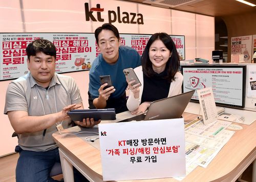KT(대표이사 김영섭)는 5월 27일부터 8월 31일까지 전국 KT 매장을 방문하는 고객을 대상으로, 가족까지 보장되는 '피싱·해킹 안심 보험'을 6개월간 무료로 제공하는 프로모션을 진행한다고 밝혔다.
