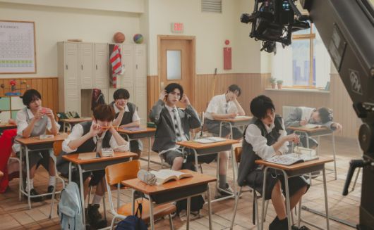 JYP는 28일 신곡 뮤직비디오 비하인드 포토를 선보이고 열기를 끌어올렸다. 사진 속 계훈, 아마루, 동화, 주왕, 민제, 케이주, 동현은 캐주얼한 스쿨룩 스타일링으로 설레는 하이틴 감성을 완성했다. 또 일곱 멤버의 자유분방하고 쾌활한 모습이 기분 좋은 에너지를 선사한다.