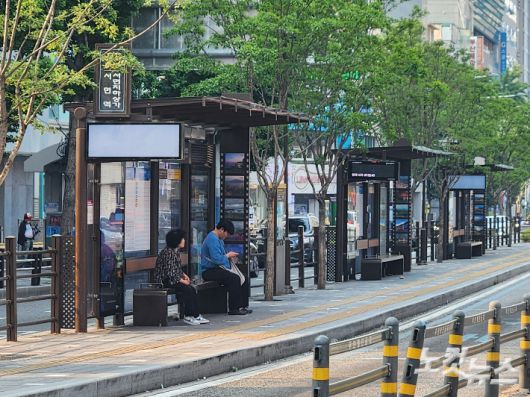 부산진구 서면역 일대 마을버스 정류장에서 시민들이 마을버스를 기다리고 있다. 정혜린 기자 |