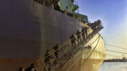 지난달 2일 관세청과 해양경찰청 합동 검색팀이 마약밀수 단속을 위해 강릉 옥계항에 입항한 선박에 오르고 있다. 선박 내 밀실에서는 코카인으로 의심되는 마약류 2t 상당이 발견됐다. 관세청 제공 |