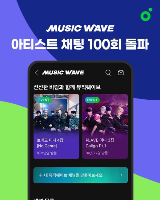 뮤직웨이브에서 처음 진행된 아티스트 채팅은 2023년 12월 7일 보이그룹 에이티즈(ATEEZ)의 이벤트이다. 이후 K팝 스타들이 새로운 앨범을 발매할 때마다 뮤직웨이브를 찾고 있으며, 17개월이 흐른 이달 20일 아이들(i-dle), 21일 백현에 이어 26일 킥플립(KickFlip)의 채팅 이벤트로 100회째를 맞았다. 100회 동안 채팅 이벤트에 총 143만명의 이용자가 방문하여 695만건의 채팅을 나누었고, 3379만회의 스트리밍이 이뤄졌다.