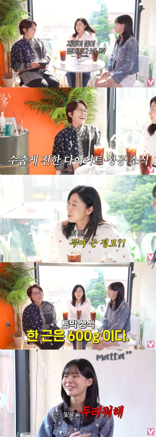 라미란은 "지방이 많이 없어지다 보니까 좀 춥더라"라며 다이어트 성공 소식을 전했다. 송은이가 "얼마나 걷어낸 거냐"고 묻자, 라미란은 "한 두어 근 정도?"라고 답했다.
