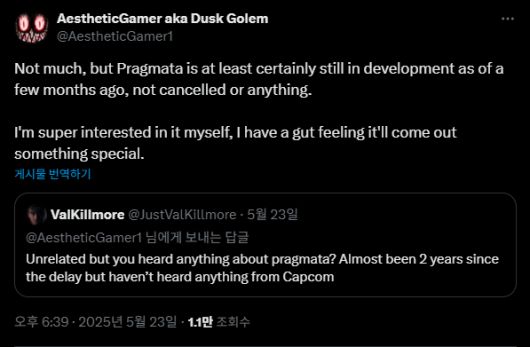 ▲ 프래그마타 개발 현황에 대해 전한 더스크 골렘 (자료출처: AestheticGamer aka Dusk Golem 공식 X)