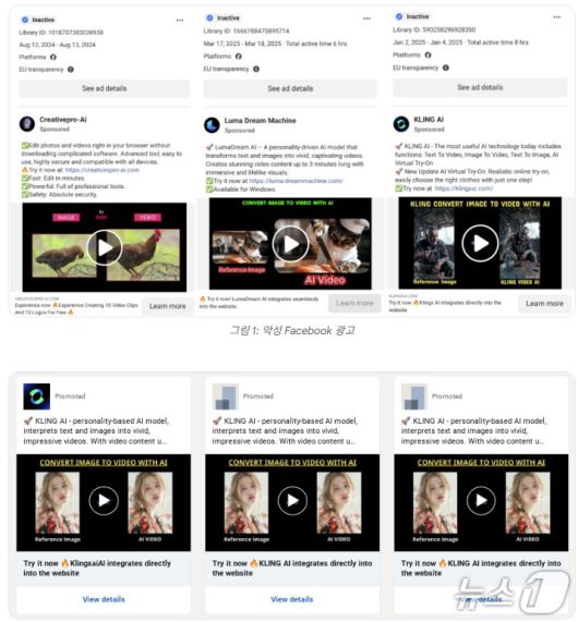 맨디언트에 따르면 해킹그룹 UNC6032는 페이스북과 링크드인에 수천 개의 악성 광고를 게재해 이용자들을 가짜 AI 도구 사이트로 유도했다.
