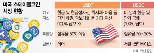미국 정부도 스테이블코인 관련 입법을 추진하면서 가상자산의 제도권 편입에 속도를 내고 있다. 미 상원은 이달 19일 스테이블코인을 규제하는 첫 가상자산 관련 법안 ‘지니어스’를 통과시켰다. 스테이블코인에 대해 1대1 준비금 보유, 자금세탁 방지 의무, 소비자 보호, 연방 및 주 규제 기관의 감독 등이 골자다. 규제 법안이지만 시장에서는 코인을 정당한 금융 수단으로서 인정하는 움직임이라는 평가가 나온다.