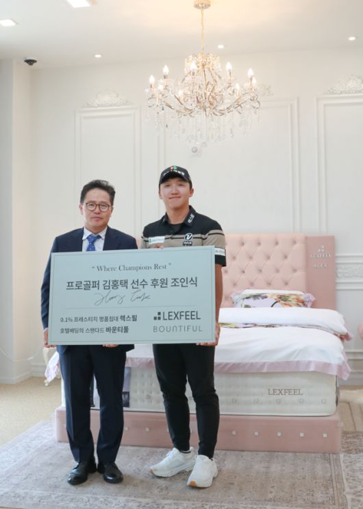 김홍택 프로가 26일 대한민국 프리미엄 침대 브랜드 '렉스필(LEXFEEL)'과 공식 후원 조인식을 체결했다. 렉스필 제공 |