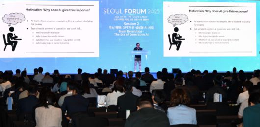브라이언 키안 시앙 로 싱가포르국립대 AI연구소 부소장은 28일 서울 중구 신라호텔에서 열린 ‘서울포럼 2025’ '세션 2 두뇌혁명: GPT가 연 생성형 AI 시대'의 특별강연에서 "효율적인 AI를 위해 데이터가 많을 필요가 없다"며 이 같이 설명했다. 이날 로 교수는 △더 적은 데이터로 학습하는 방법 △AI를 확인하는 AI를 주제로 그동안 연구 내용을 요약해 발표했다.