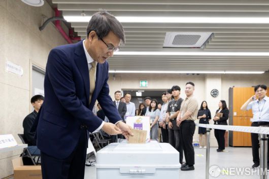 [서울=뉴스핌] 이호형 기자 = 제21대 대통령 선거 사전투표를 하루 앞둔 28일 노태악 중앙선거관리위원장이 서울 광진구 중곡3동 주민센터에 마련된 사전투표소에서 사전투표 모의체험을 하고 있다. 2025.05.28 leemario@newspim.com