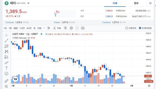 28일 국제금융센터가 서울 명동 YWCA에서 ‘가상화폐, 금융의 신패러다임 전환인가?’를 주제로 연 세미나에서 김갑래 자본시장연구원 연구위원은 발제를 통해 “국내에서 스테이블 코인 발행은 현재 불법이지만, 외국에서 발행된 달러 기반 스테이블코인 거래량은 지난 2월3일 하룻동안 국내 5대 가상자산거래소에서 12억8천만개, 지난 3월10일에는 3억7천만개에 이르는 등 대규모 유통시장이 형성돼 있다”며, “비트코인에서 발생하는 김치프리미엄 영향으로 가격 왜곡 현상이 지속되고 있다”고 말했다. 원칙상으로 달러 기반 스테이블코인은 1개당 1달러에 연동돼 있다.