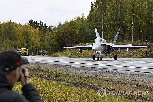 (서울=연합뉴스) 서혜림 기자 = 북대서양조약기구(나토·NATO) 회원국들이 러시아의 군사위협에 대비해 핀란드에서 전투기의 고속도로 비상착륙와 미사일 회피 기동 등 전술훈련을 실시하고 있다.