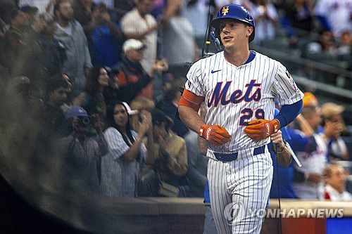 (서울=연합뉴스) 하남직 기자 = 지난해 한국프로야구 두산 베어스에서 뛴 재러드 영(29·KBO 등록명 제러드)이 메이저리그(MLB) 뉴욕 메츠 유니폼을 입고 홈런포를 쏘아 올렸다.