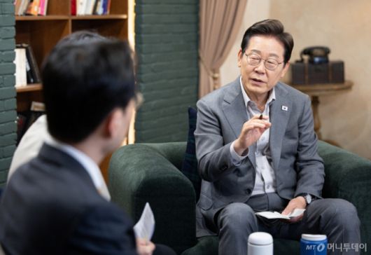 [서울=뉴시스] 조성우 기자 = 이재명 더불어민주당 대선후보가 28일 오후 서울 강남구의 한 스튜디오에서 열린 '1400만 개미와 한배 탔어요' 유튜브 생방송에서 발언하고 있다. (공동취재) 2025.05.28. photo@newsis.com /사진=조성우 |
