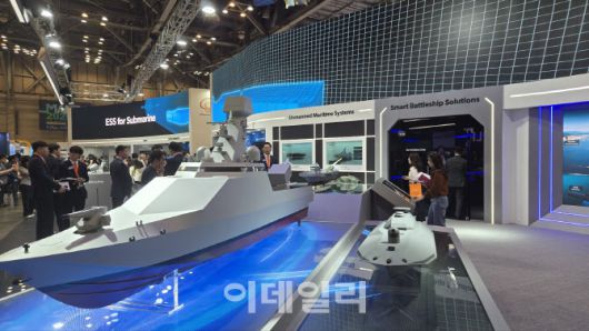 [이데일리 김관용 기자] 한화시스템이 ‘국제해양방위산업전(MADEX) 2025’에서 한화에어로스페이스·한화오션과 함께 개발한 전투용 무인수상정을 처음으로 공개했다. 또 인공지능(AI)을 통해 유인 함정의 지능화와 자동화를 구현한 ‘스마트 배틀십(Smart Battleship)’도 첫선을 보였다.