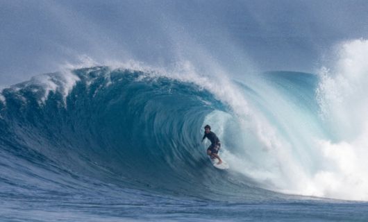 2월18일(현지시간) 하와이 오아후섬 북쪽 해안에서 프로 서퍼가 파도를 타고 있다./AFPBBNews=뉴스1 |
