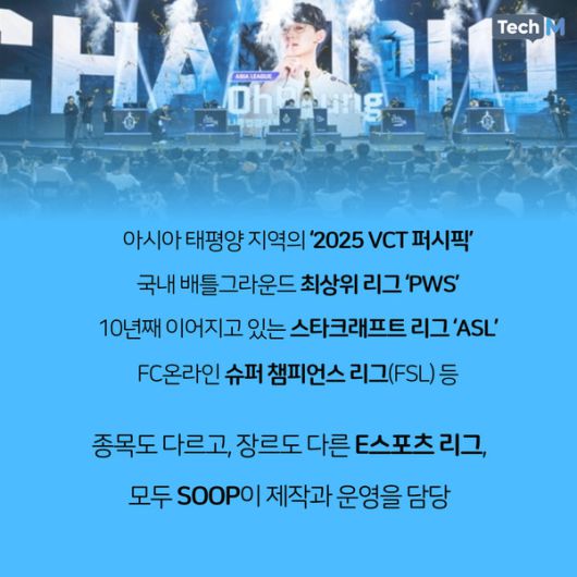 '2025 VCT 퍼시픽', 'PWS', 'ASL' 그리고 FC온라인 슈퍼 챔피언스 리그(FSL)까지.. 종목도 다르고, 장르도 다르지만 이 인기 e스포츠 리그들에는 하나의 공통점이 있는데, 바로 제작과 운영을 모두 SOOP이 맡고 있다는 점입니다.