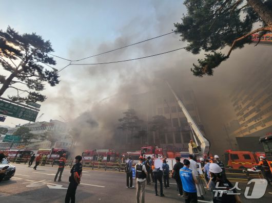 28일 오후 3시 25분쯤 서울 중구 산림동 세운대림상가 인근 1층짜리 건물에서 불이 나 다량의 연기가 발생하고 있다. / 뉴스1 권진영 기자 |