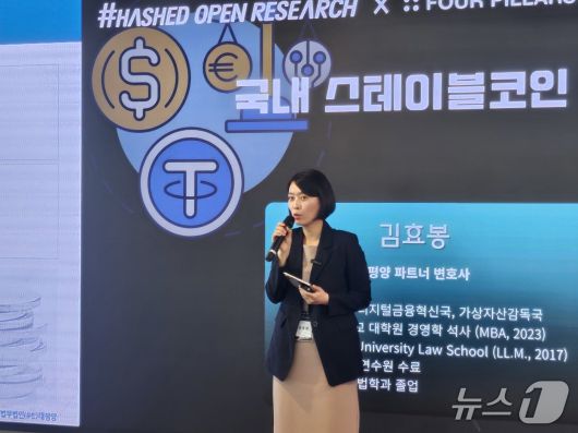 김 변호사는 "스테이블코인은 결국 가치는 어느 정도 안정됐지만, (때로는) 가치가 움직이기도 하는 아주 독특한 성격을 가지고 있다"면서 "우리 법제에서 생각해보면 투자 자산을 규율하는 자본시장법에 들어갈 것인가, 지급 수단을 규율하는 전금법에 들어갈 것인가, 아니면 새로운 틀에 담을 것인가 고민이 된다"고 설명했다.