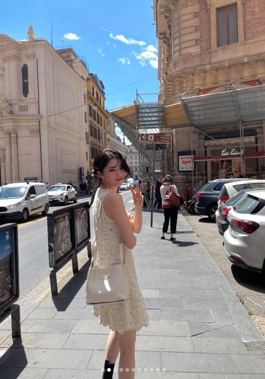 공개된 사진에는 이탈리아를 여행 중인 듯한 한소희의 모습이 담겨 있었다. 한소희는 레이스 장식의 흰색 원피스를 입고 유럽 거리를 활보하며 자연스러운 사진을 남겼다. 인형 같은 비주얼과 상큼한 분위기로 시선을 끌었다.