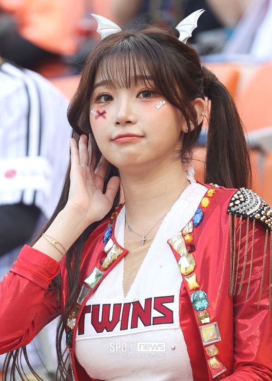 [스포티비뉴스=잠실, 곽혜미 기자] 2025 신한 SOL Bank KBO리그 LG 트윈스와 한화 이글스의 경기가 28일 오후 서울 송파구 잠실야구장에서 열렸다. LG 이주은 치어리더가 응원 무대를 펼치고 있다. <저작권자 ⓒ SPOTV NEWS. 무단전재 및 재배포 금지>