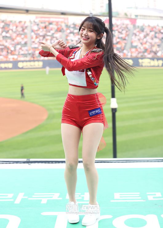 [스포티비뉴스=잠실, 곽혜미 기자] 2025 신한 SOL Bank KBO리그 LG 트윈스와 한화 이글스의 경기가 28일 오후 서울 송파구 잠실야구장에서 열렸다. LG 이주은 치어리더가 응원 무대를 펼치고 있다. <저작권자 ⓒ SPOTV NEWS. 무단전재 및 재배포 금지>
