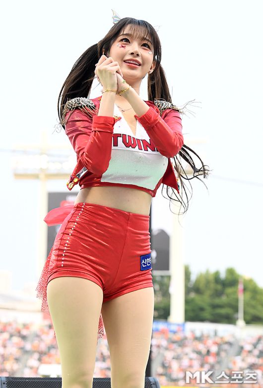28일 서울 잠실야구장에서 ‘2025 KBO리그’ 한화 이글스와 LG 트윈스의 경기가 열렸다. LG 치어리더 이주은이 응원을 하고 있다. 잠실(서울)=천정환 MK스포츠 기자 [ⓒ MK스포츠, 무단전재 및 재배포 금지]