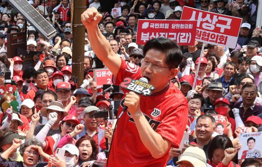 김 후보는 이날 유세마다 이재명 더불어민주당 후보를 맹비난했다. 김 후보는 김해 김수로왕릉공원 유세에서 “193석으로 국회 의석이 많으니까 마음대로 대법원장도 탄핵하고 청문회 하려고 한다”며 “삼권분립이 아니라 삼권독재로 총통(總統) 독재를 하려는 것”이라고 쏘아붙였다. 창원과 부산 서면에선 부마항쟁 등을 거론하며 “독재로 가지 못하도록 민주주의를 굳건히 세워달라”고 했다. 경산시장 유세에선 “민주당에서 총리와 전남지사까지 한 이낙연 전 국무총리가 괴물 방탄을 막아야겠다고 저를 지원하겠다고 했다”며 “대한민국은 괴물 방탄 독재국가와 민주주의의 갈림길에 서 있다”고 했다.