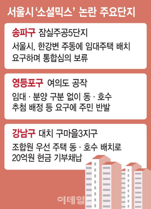 그런데 최근 재건축·재개발이 활성화하면서 소셜믹스를 요구하는 서울시에 재산권 침해라른 반발이 잇따라 제기됐다.