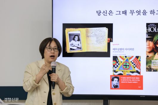 김 교수는 홀로코스트 역사를 공부하며 집단이 아닌 평범한 개인을 다룬 예술 작품들의 힘, 문화의 힘을 실감하게 됐다고 했다. 평범한 사람들이 고통받는 게 전쟁이라는 메시지로 사람들의 가슴을 울린 <안네의 일기>, 사유하지 않으면 누구나 그냥 명령에 따르는 나쁜 일을 할 수 있다, 평범한 가해자가 될 수 있다며 ‘악의 진부함’을 깨우친 <예루살렘의 아이히만> 등 2권의 책이 대표적이었다. 1978년 미국에선 1935년부터 1945년을 배경으로 유대인 가족과 독일인 가족 이웃의 이야기를 그린 <홀로코스트>라는 4부작 드라마를 만들었고, 20여개국에 수출되며 인기를 끌었다. 특히 1979년 독일에서 방송되며 독일의 젊은 세대가 “할아버지, 할머니, 엄마, 아빠 이웃의 유대인이 이렇게 고통당할 때 당신들은 뭘 하셨나요”라고 하면서 본격적인 과거청산에 나섰다. 1993년 <쉰들러 리스트> 영화까지 만들어지며 유대인 대학살이 얼마나 끔찍했는지 전 인류에 보편기억으로 자리 잡았다.