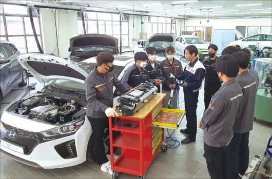 2030 젊은 세대 사이에서 블루칼라 직종에 대한 관심이 커지는 요즘이다. 사진은 한국폴리텍대 인천캠퍼스 스마트전기자동차과에서 고전압 배터리 구조 및 충전 방법에 대한 실습을 진행하는 모습. (한국폴리텍대 제공) |