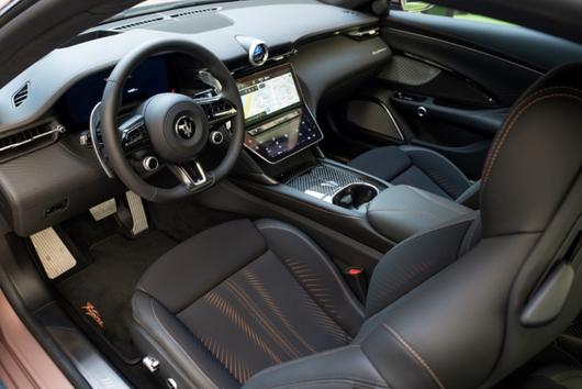 우아한 디자인도 압권이다. 긴 보닛과 네 개의 펜더가 교차하는 차체의 곡선에서 고급스러움이 느껴진다. 마세라티 고유의 디자인인 ‘코팡코’ 등 클래식한 요소를 유지한 채 고성능을 위한 다양한 요소들을 추가한 결과다. 루프 라인은 하강하는 느낌을 더해 역동적인 느낌을 강조했으며 마세라티 특유의 ‘넵튠 삼지창’ 로고가 새겨진 필러 곡선도 눈길을 끈다. 헤드램프에는 마세라티의 새로운 시그니처인 수직형 라이트가 적용됐다. 그란투리스모의 전장·전폭·전고는 각각 4960㎜·1960㎜·1375㎜다.