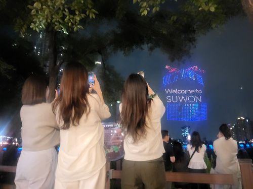드론들은 수원화성의 이미지와 "웰컴투 수원" 등의 문구를 선보였다.
