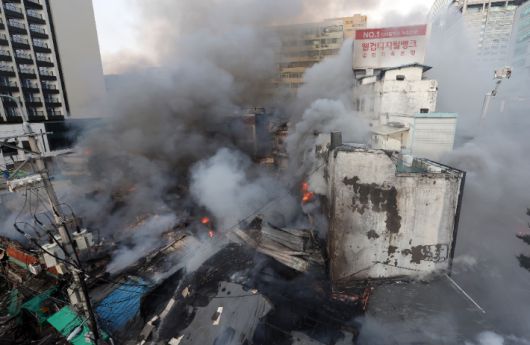 불이 난 곳은 재개발 예정 지역으로 노후 건물이 밀집돼 있었다. 이 일대엔 74개의 점포가 영업 중이었으며, 그 외 대부분의 건물 내 공간이 창고 등으로 사용되고 있다. 노후 건물에 다량의 가연물이 있고, 진입로도 협소해 진화 작업이 특히 어려웠다고 한다. 소방은 중장비를 이용해 화재 건물 철거 작업까지 진행했다. 이번 화재로 소실된 점포는 48개에 달한다.