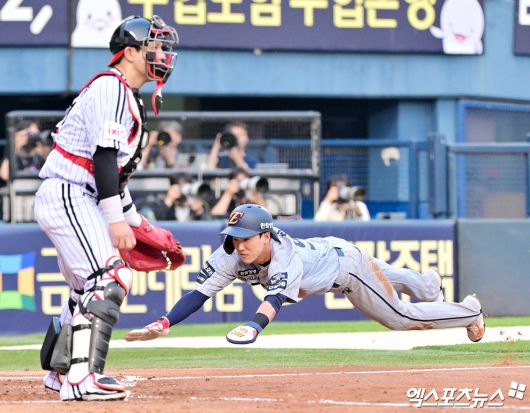 LG는 구본혁과 대타 오지환이 연속 삼진을 당하면서 흐름이 한 차례 끊겼지만 박해민이 해결사로 나섰다. 박해민의 빗맞은 타구가 좌익수 앞에 떨어지는 안타로 연결, 주자 두 명이 모두 홈 플레이트를 밟아 스코어는 4-4 동점이 됐다.