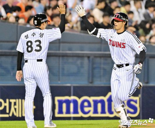 LG는 6회말 또 한 번 홈런포로 반격의 신호탄을 쐈다. 1사 주자 없는 상황에서 이영빈이 짜릿한 손맛을 봤다. 원 볼 원 스트라이크에서 폰세의 3구째 142km/h짜리 체인지업을 때려내 우측 담장을 넘어가는 비거리 116m짜리 타구를 날려 보냈다.