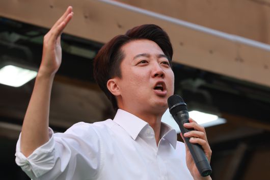 개혁신당 이준석 대선 후보가 28일 서울 강남구 코엑스 동문에서 집중유세를 하고 있다. /연합뉴스 |