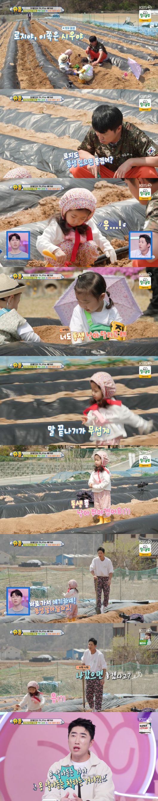 28일 방송된 KBS 2TV '슈퍼맨이 돌아왔다' 575회는 '뛰고 웃고 즐기고' 편으로 장동민-지우 부녀와 오종혁-로지 부녀가 봄맞이 모종 심기를 위해 만났다.