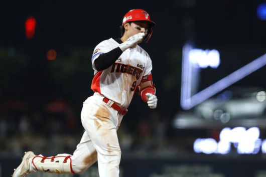 KIA 윤도현이 28일 광주 키움전에서 5회말 솔로 홈런을 친 뒤 그라운드를 돌고 있다. KIA 제공 |
