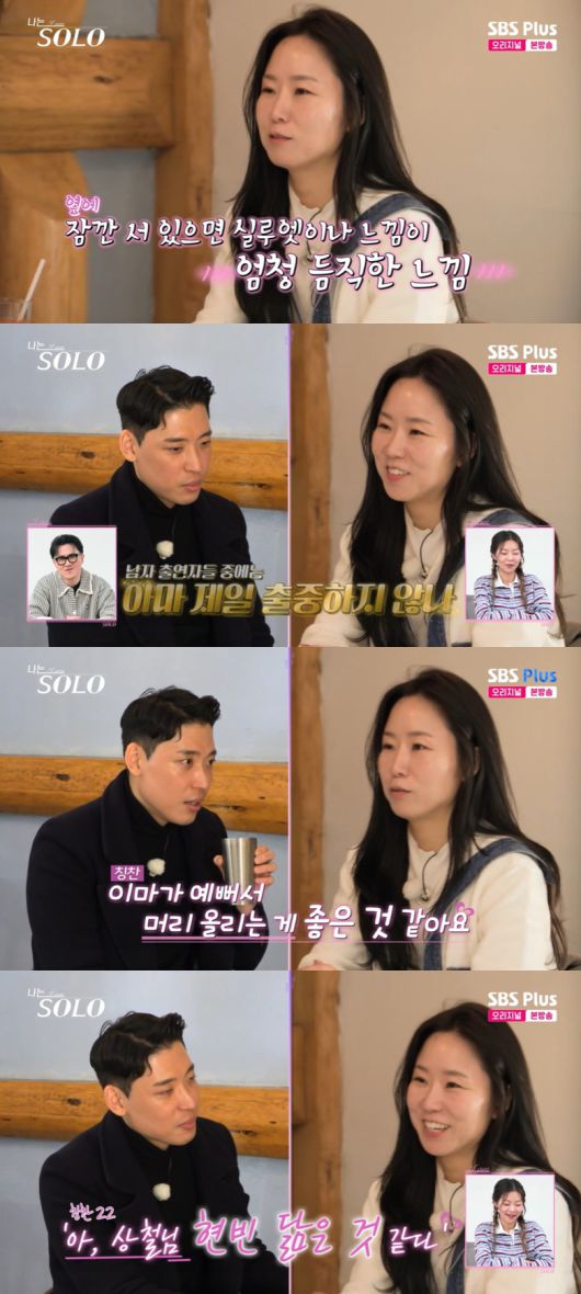 이날 영숙은 마음속에 품고 있던 상철과 데이트에 나섰다. 영숙은 "대화를 많이 안 나눠봤어가지고. 옆에 잠깐 서 있으면 실루엣이나 느낌이 듬직한 느낌"이라며 상철을 칭찬했다.
