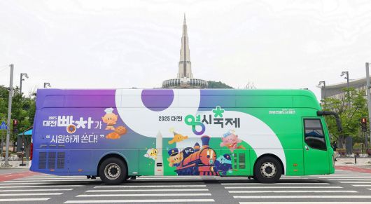 ‘꿈씨 패밀리’로 외관을 장식한 대전빵차가 7월까지 부산과 충주, 보령, 세종을 누비며 대전 지역에서 만든 빵을 나눠주고 2025 대전 0시 축제를 알린다.