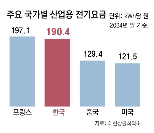 이런 급격한 산업용 전기료 인상은 국내 산업 경쟁력을 약화시키고 있다. 대한상공회의소 조사에 따르면 지난해 말 기준 한국의 산업용 전기료는 190.4원으로 중국(129.4원), 미국(121.5원)보다 높았다. 국내 제조사 300곳 가운데 70% 이상이 전기료 상승으로 심각한 악영향을 호소했다.