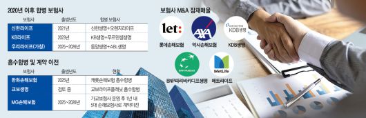 중소형 보험사 M&A 매물도 쌓여있다. 롯데손해보험은 상시매각 체제로 주인 찾기에 나섰고 악사손해보험·KDB생명·BNP파리바카디프생명·메트라이프 등도 잠재 매물로 거론된다.