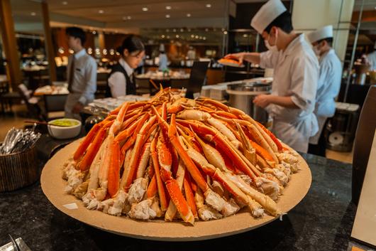 ‘육식파’라면 목요일, ‘해산물파’라면 금요일을 노리시라. 목요일 저녁은 육류 테마의 ‘미트 러버스 나잇’으로 차리는데 비프 웰링턴, 꽃등심 구이, 포르게타, 차슈, 된장 등갈비 구이, 북경오리 등이 다채롭게 깔린다. 참치 해체 쇼를 선보이는 금요일 저녁 뷔페(시푸드 나잇)는 매주 ‘완판’이 이어지고 있다. 오후 7시쯤이면 막 썰어낸 참치가 해산물 섹션에 올라온다. 대뱃살이나 배꼽살 같은 인기 부위는 경쟁이 치열하다. 어른 팔뚝만 한 킹크랩도 깔린다.