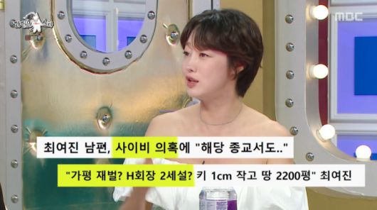 최여진은 앞서 SBS 예능 프로그램 '동상이몽2-너는 내 운명'을 통해 결혼 소식을 알렸으나 불륜 의혹, 사이비 교주 아들설, 재벌 H가 혼외자설 등 루머에 휘말리며 논란의 중심에 섰다고 밝혔다.